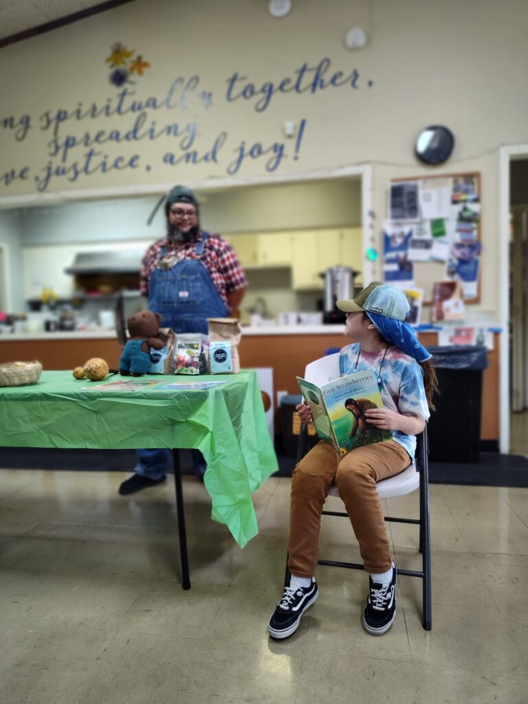 On Sunday, October 19, 2025, Doug Martin and his son spoke, taught, cooked, and shared stories with our Children and Youth Religious Education (CYRE) class and after church with the congregation and community in the Wildflower Community Room. What powerful (and yummy) indigenous lessons and wisdom corn offers about working together, identity, history, the future, and so much more.